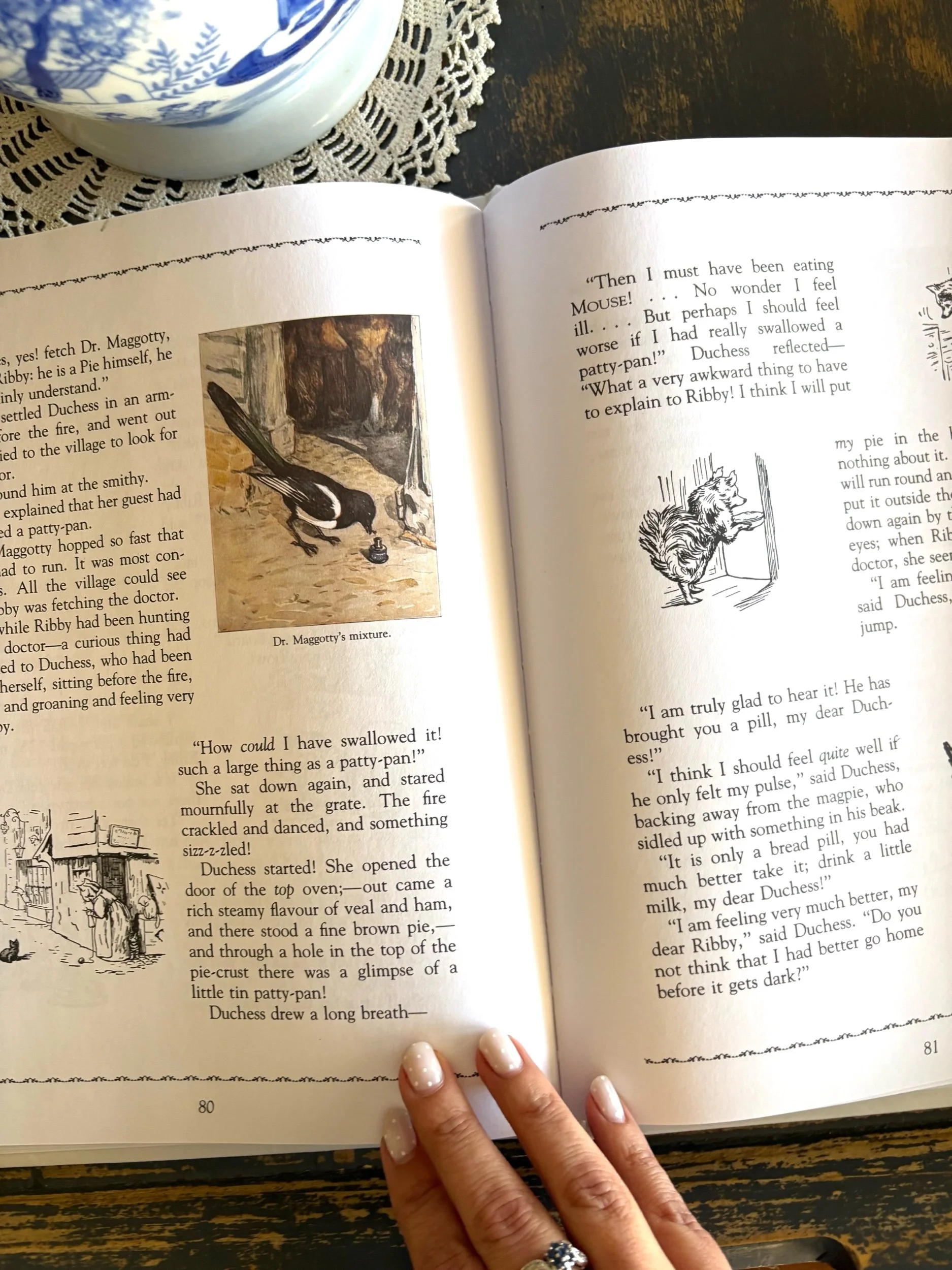 “A collection of favorite stories including "The Story of Miss Moppet," "The Tale of Tom Kitten," "The Tale of Jemima Puddle-duck," "The Roly-Poly Pudding," and "The Story of a Fierce Bad Rabbit"“