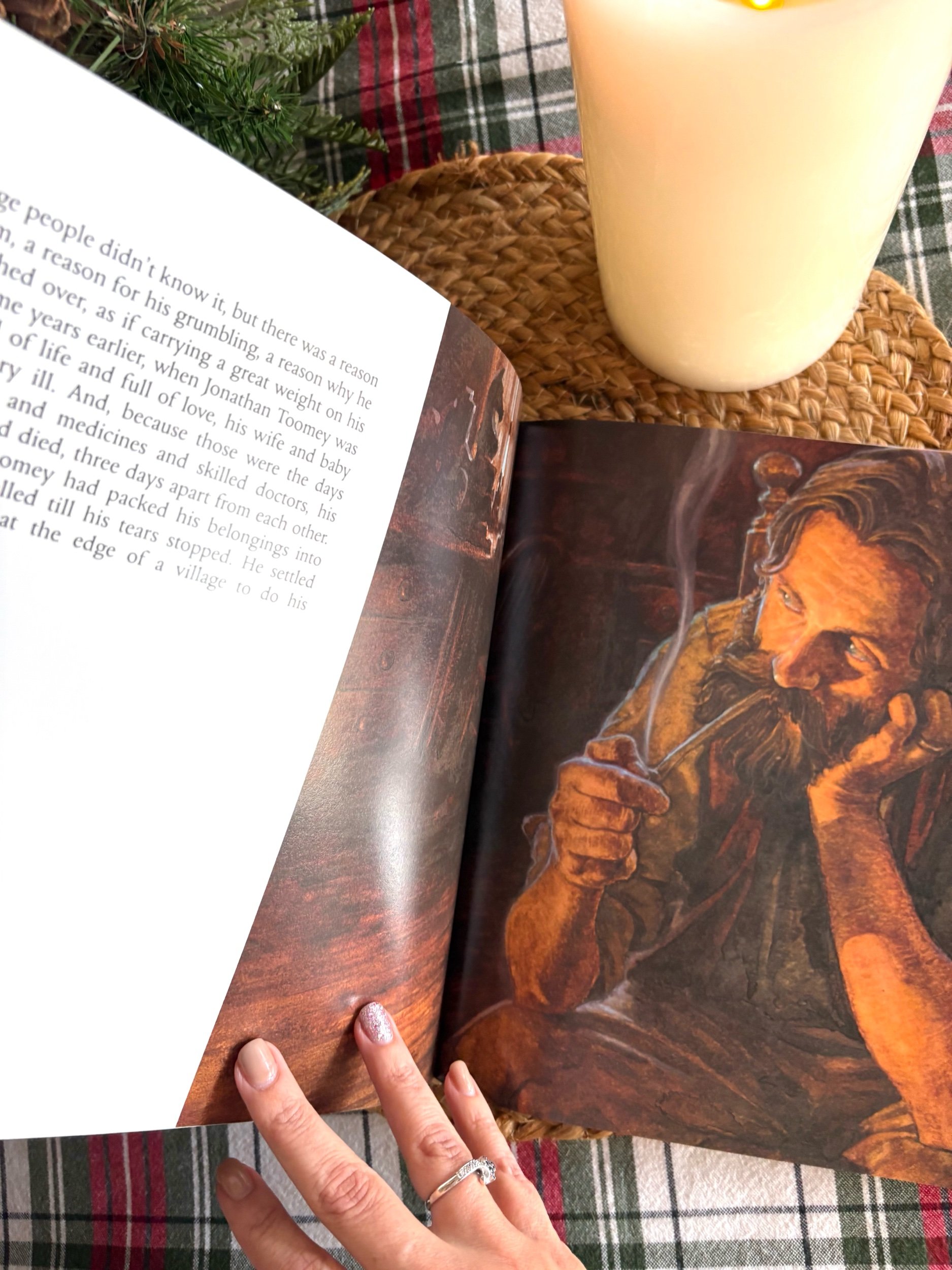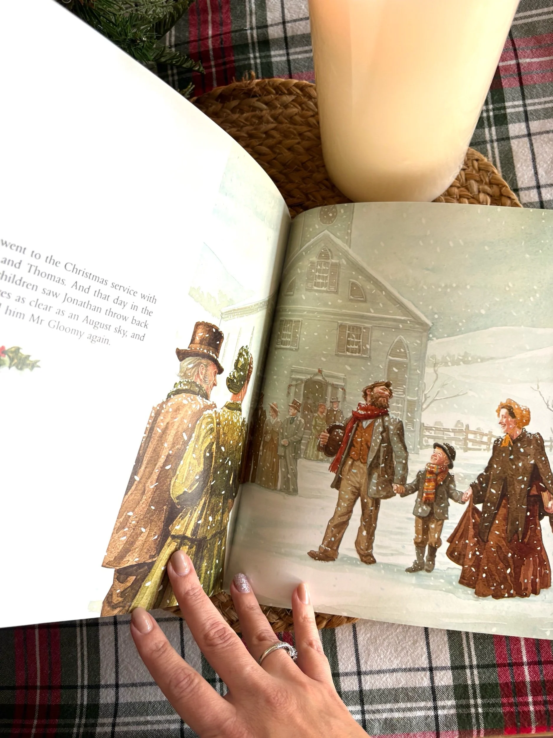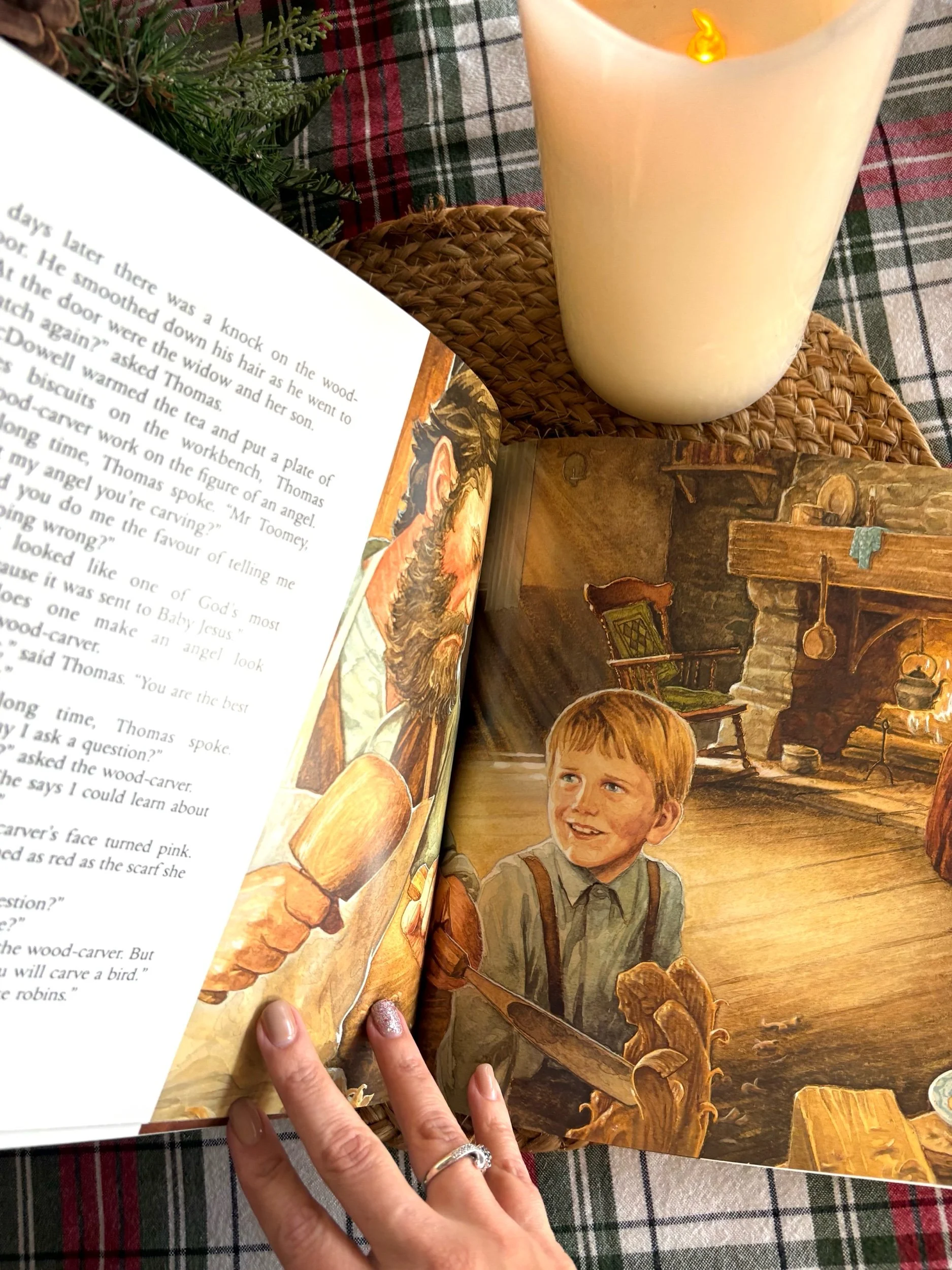 “Jonathan Toomey was once a happy man with a wife and a baby. But since their death his grief has turned him cold and hard. “Mr. Gloomy”, the children call him. Then one winter’s day the widow McDowell and her son Thomas knock at the sad woodcarver’s door to ask if he will make them a set of nativity figures. When, gruffly, he agrees, the heart-warming Christmas miracle of Jonathan Toomey begins…”